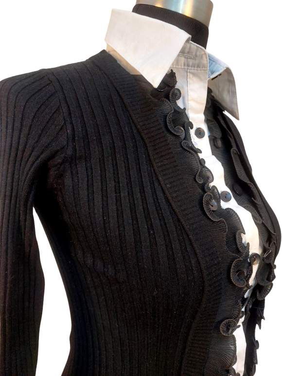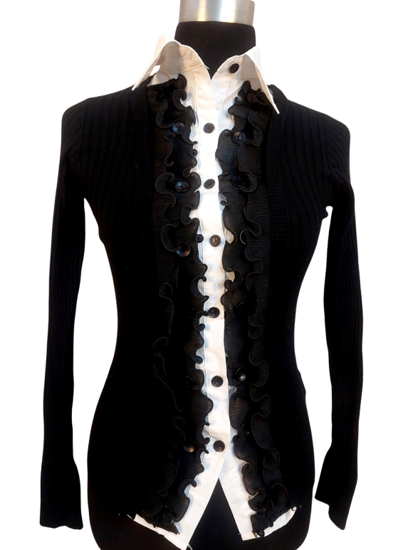 قميص - خط عنق شكل ـ V ـ، ياقة كلاسيكية، كتف عادي، أكمام طويلة عادية (Plain) - أسود - XS/S