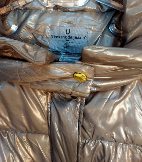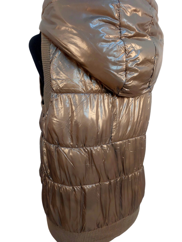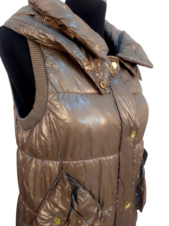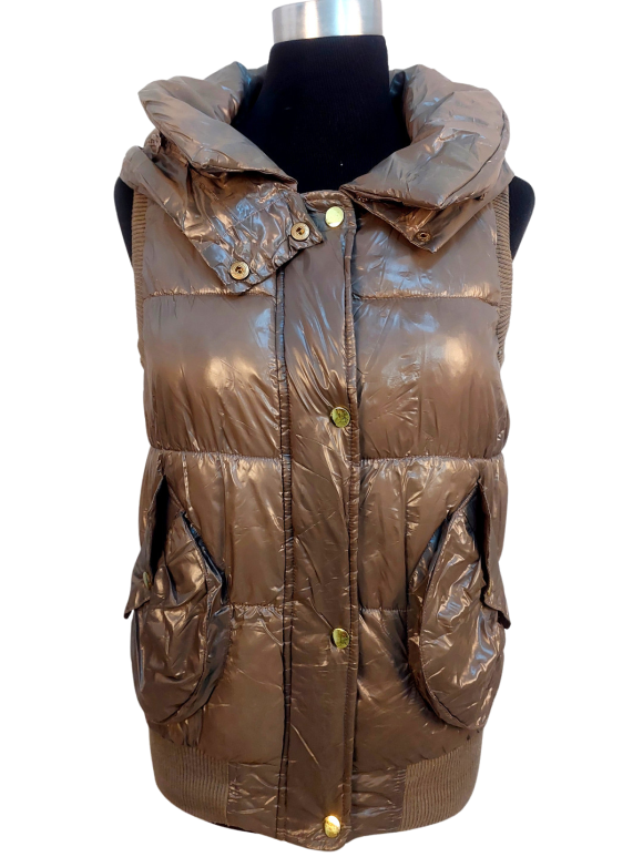 صدرية (Vest) منتفخة (Puffer) - خط عنق مرتفع (Turtleneck)، بدون ياقة، كتف عادي، بدون أكمام - بني - S