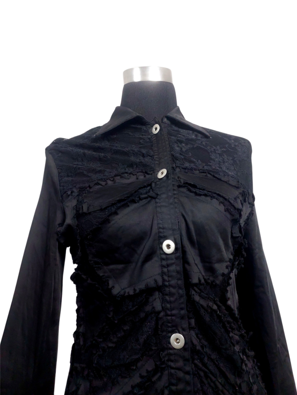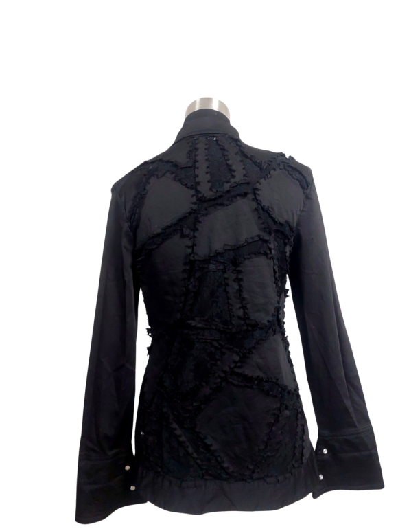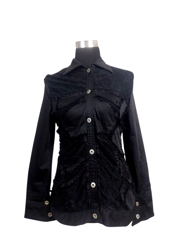 قميص - خط عنق شكل ـ V ـ، ياقة كلاسيكية، كتف عادي، أكمام طويلة عادية (Plain) - أسود - S