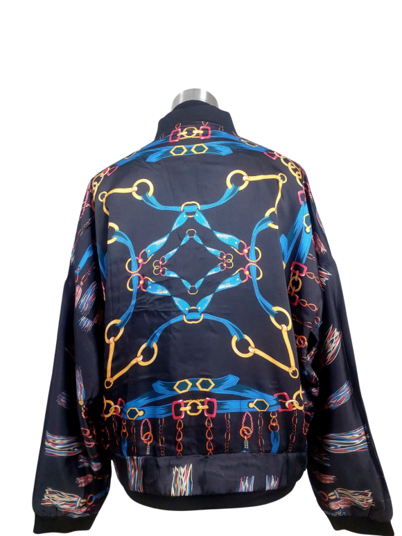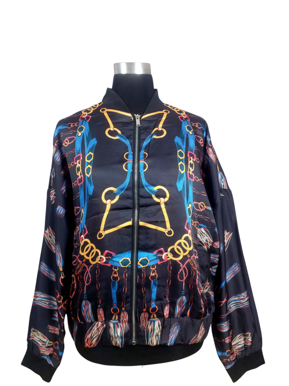 جاكيت الطيار (Bomber) - خط عنق شكل ـ V ـ، بدون ياقة، كتف عادي، أكمام طويلة عادية (Plain) - أسود - L/XL