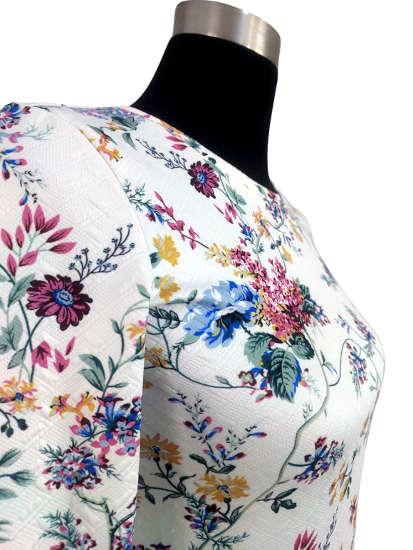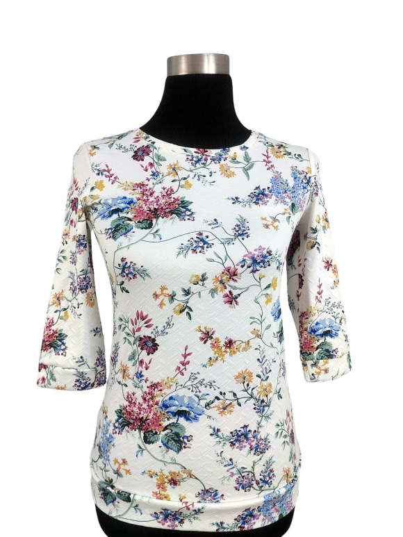 Fitted T-Shirt - No Collar, Round neckline, Regular shoulder, Plain Three quarter sleeve - White, XS