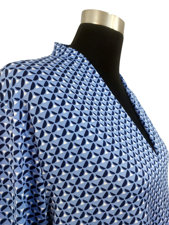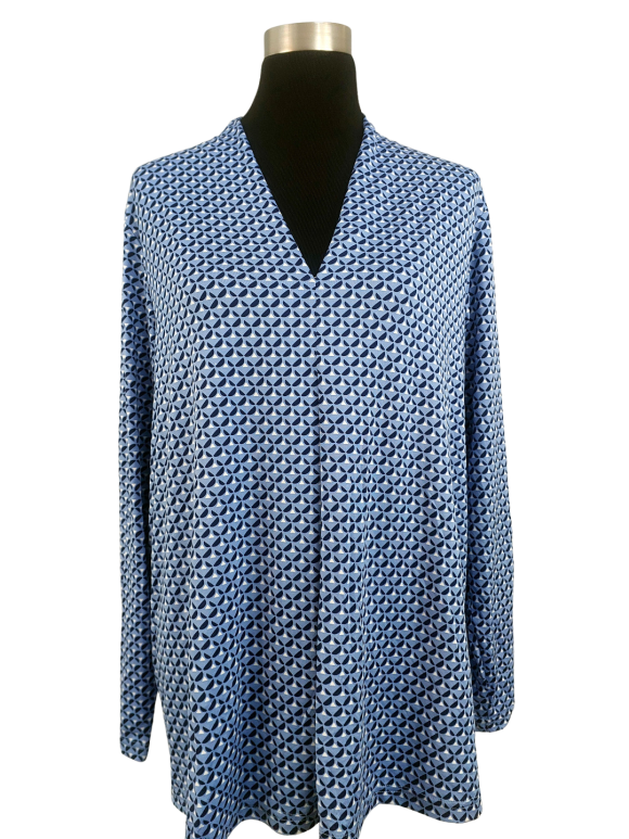 Relaxed T-Shirt - No Collar, V-Shape neckline, Regular shoulder, Plain Long sleeve - Blue, XL