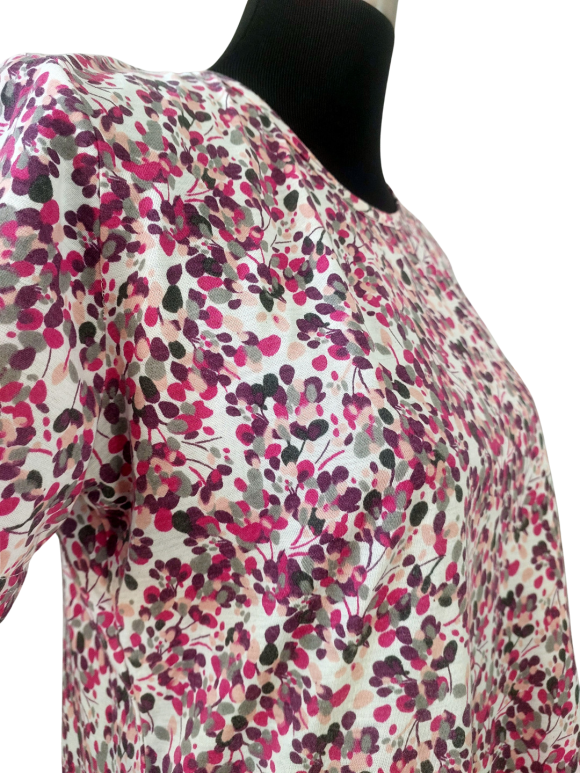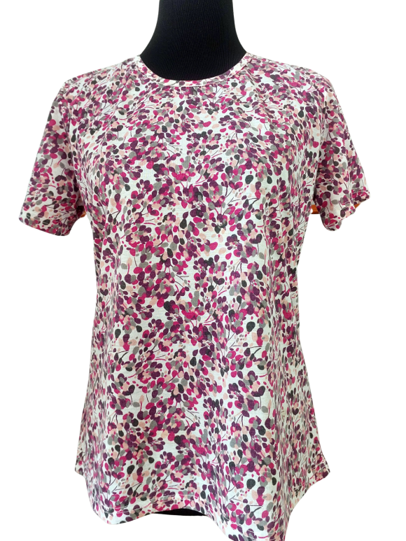 Relaxed T-Shirt - No Collar, Round neckline, Regular shoulder, Plain Short sleeve - Pink, M