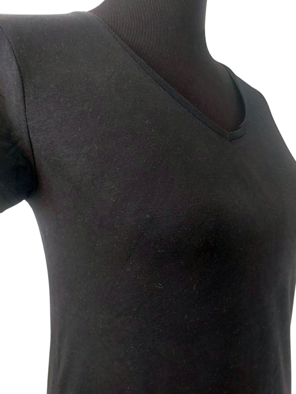 Relaxed T-Shirt - No Collar, V-Shape neckline, Regular shoulder, Cap Short sleeve - Black, M