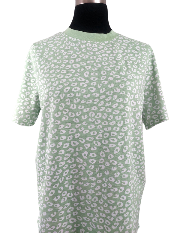 Relaxed T-Shirt - No Collar, Round neckline, Regular shoulder, Plain Short sleeve - Green, M