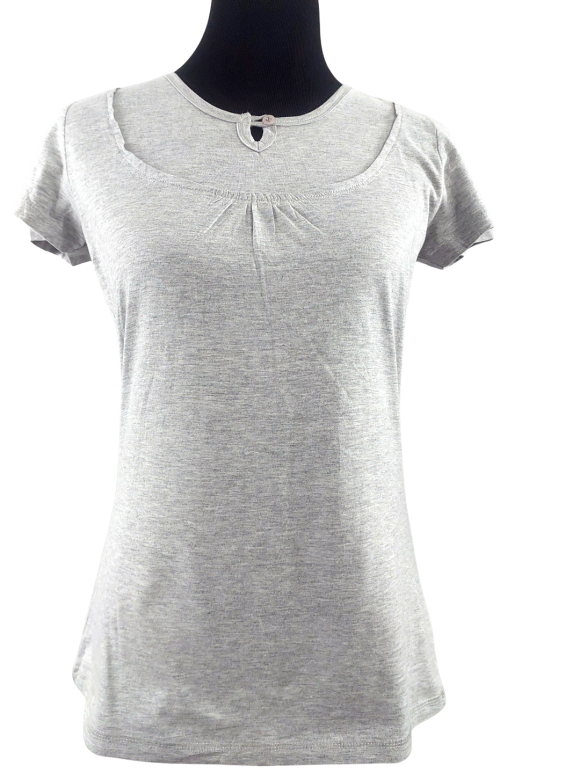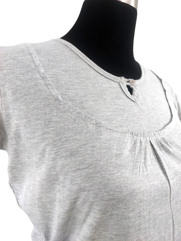 Relaxed T-Shirt - No Collar, Round neckline, Regular shoulder, Cap Short sleeve - Gray, M