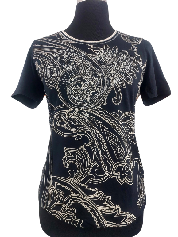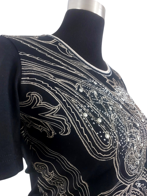 Relaxed T-Shirt - No Collar, Round neckline, Regular shoulder, Plain Short sleeve - Black, M