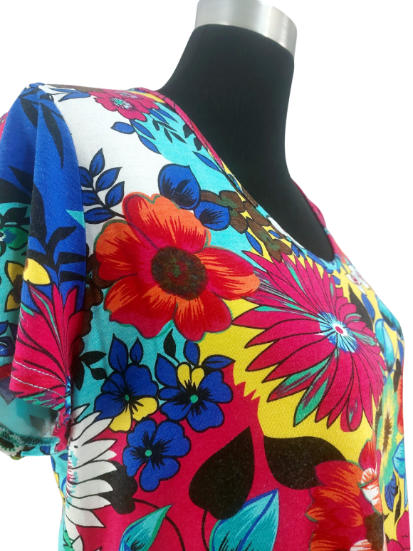 Relaxed T-Shirt - No Collar, Round neckline, Regular shoulder, Plain Short sleeve - Blue, XL
