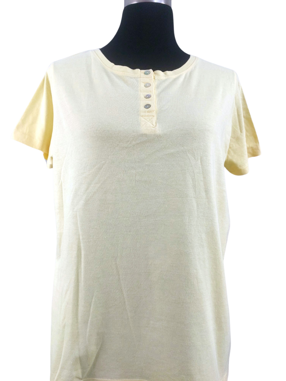 Relaxed T-Shirt - No Collar, Round neckline, Regular shoulder, Plain Short sleeve - Yellow, Fits multiple sizes