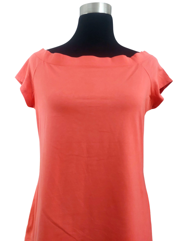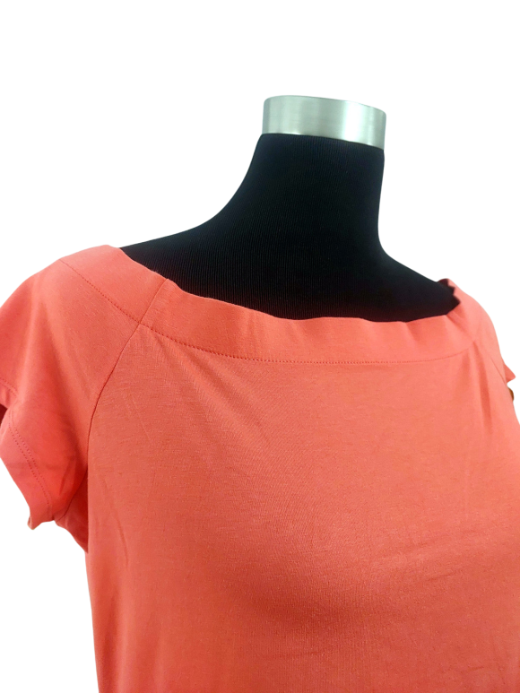 Relaxed T-Shirt - No Collar, Boat neckline, Regular shoulder, Cap Short sleeve - Orange, M
