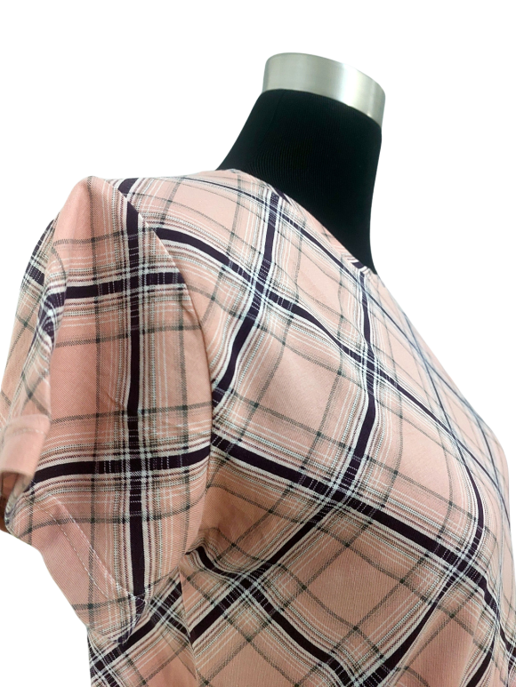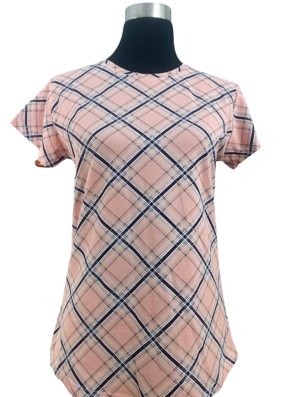 Relaxed T-Shirt - No Collar, Round neckline, Regular shoulder, Plain Short sleeve - Pink, L