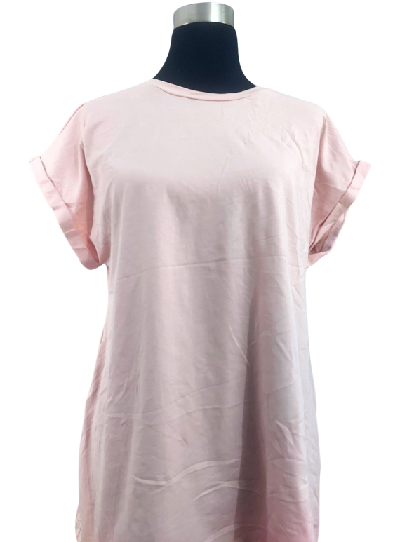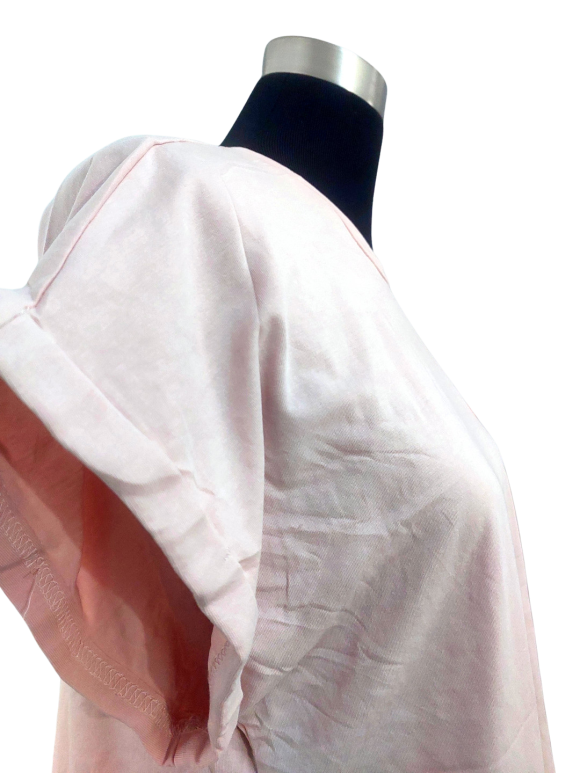 Oversized T-Shirt - No Collar, Round neckline, Regular shoulder, Batwing Short sleeve - Pink, M