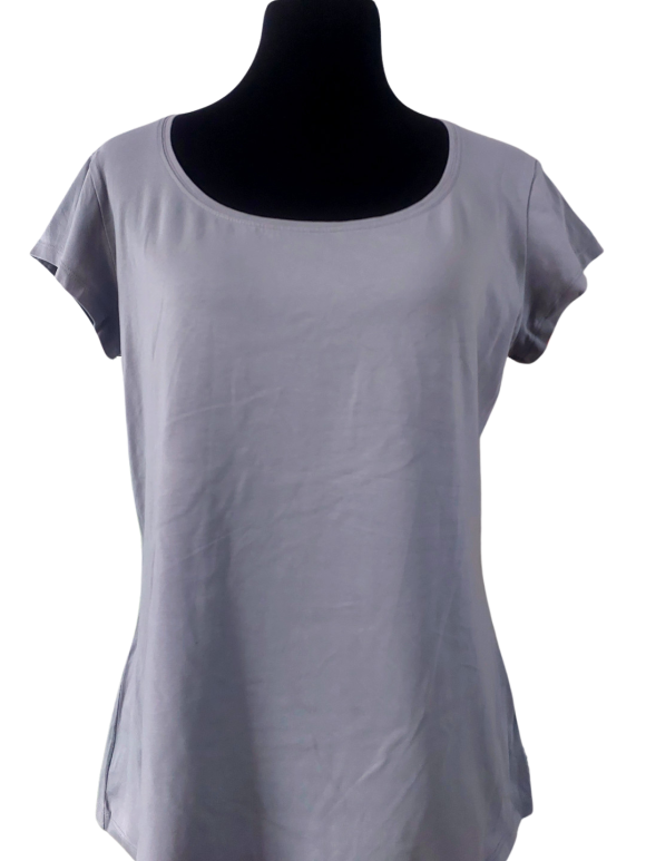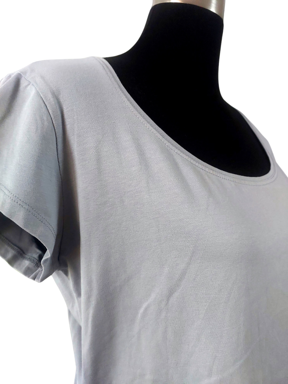 Fitted T-Shirt - No Collar, Round neckline, Regular shoulder, Cap Short sleeve - Gray, XXL