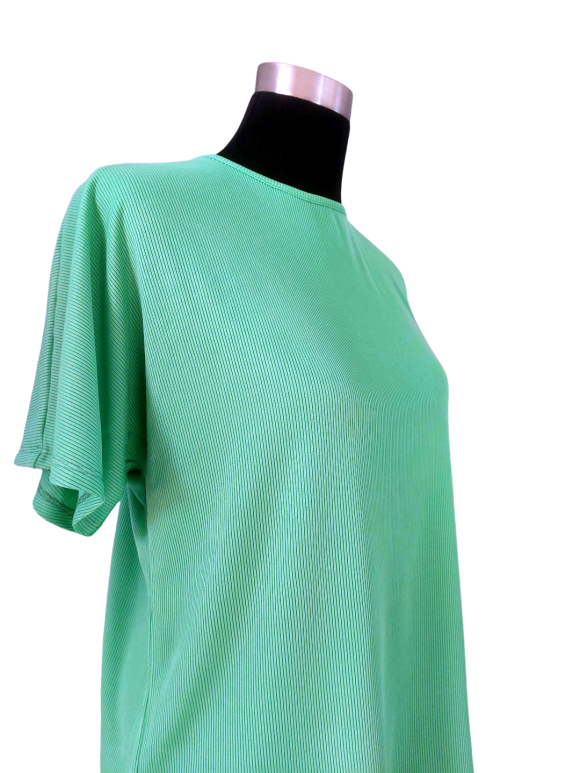 Oversized T-Shirt - No Collar, Round neckline, Regular shoulder, Batwing Short sleeve - Green, S
