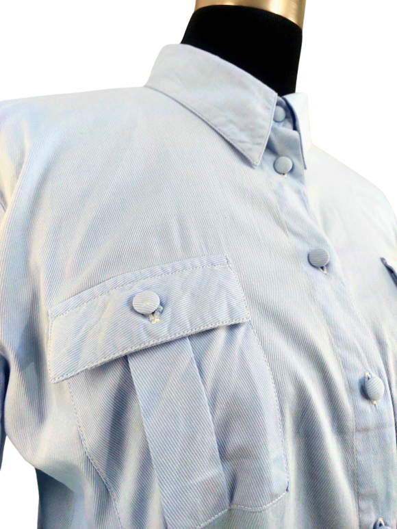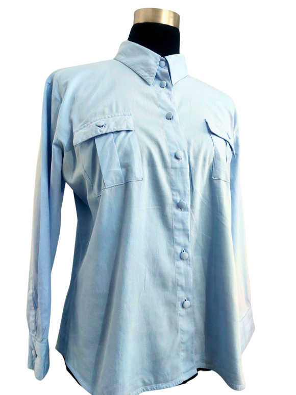 Shirt - Classic Collar, V-Shape neckline, Regular shoulder, Plain Long sleeve - Blue, L
