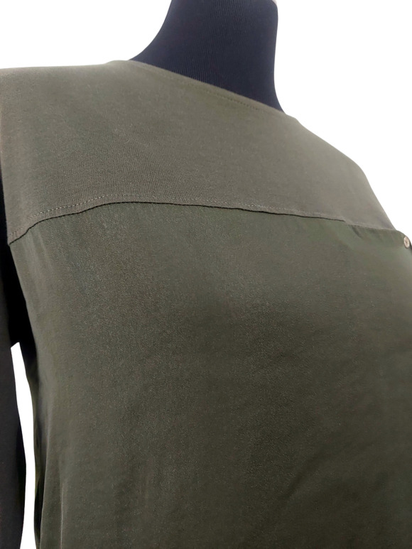 Oversized T-Shirt - No Collar, Round neckline, Regular shoulder, Plain Long sleeve - Green, S