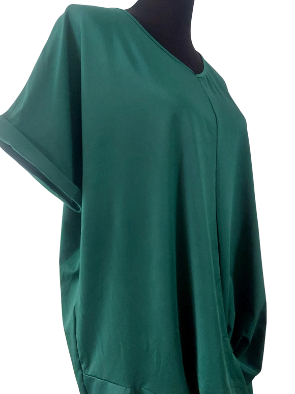 Oversized T-Shirt - No Collar, V-Shape neckline, Regular shoulder, Batwing Short sleeve - Green, 3XL