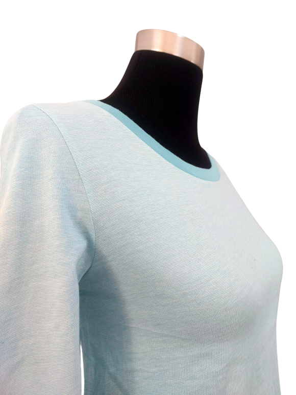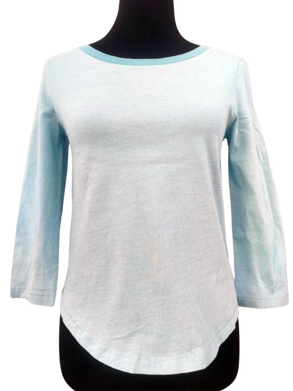 Relaxed T-Shirt - No Collar, Round neckline, Regular shoulder, Plain Long sleeve - Blue, XS/S