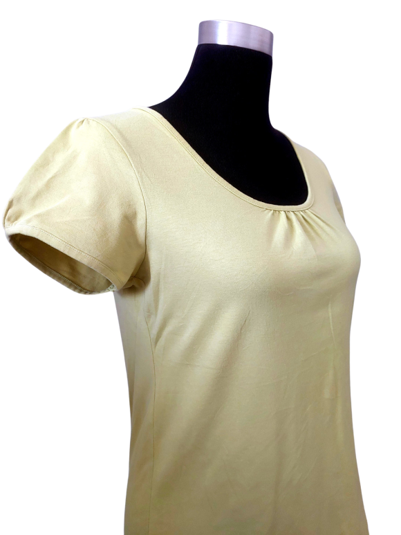 Relaxed T-Shirt - No Collar, Round neckline, Regular shoulder, Cap Short sleeve - Green, M