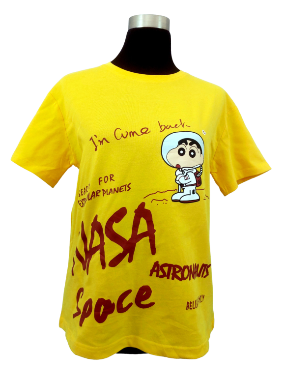 Relaxed T-Shirt - No Collar, Round neckline, Regular shoulder, Plain Short sleeve - Yellow, M