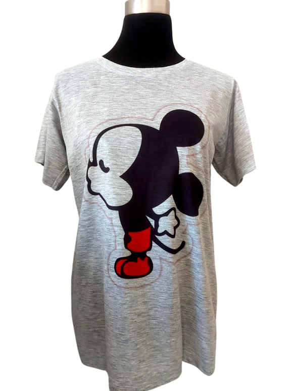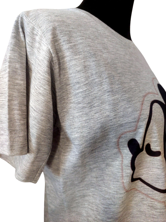 Relaxed T-Shirt - No Collar, Round neckline, Regular shoulder, Plain Short sleeve - Gray, M