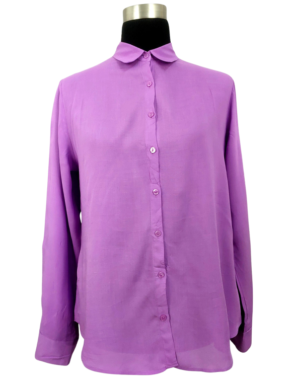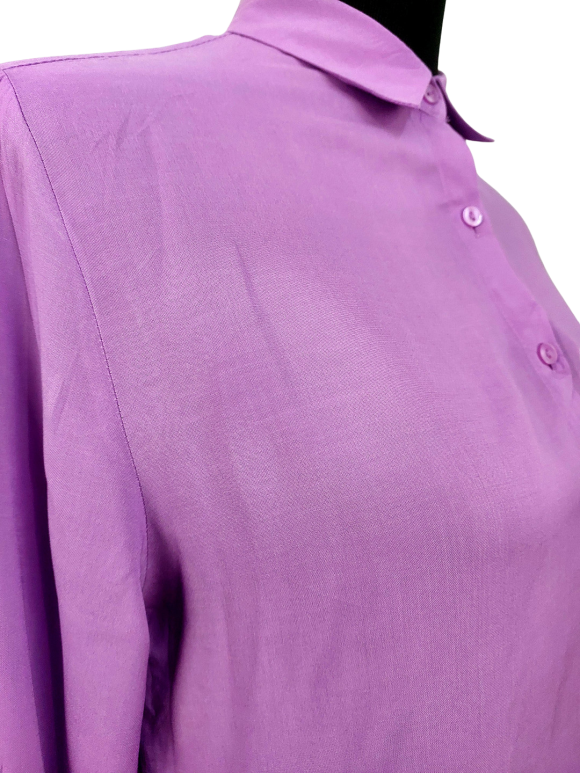Shirt - Classic Collar, V-Shape neckline, Regular shoulder, Plain Long sleeve - Purple, S/M
