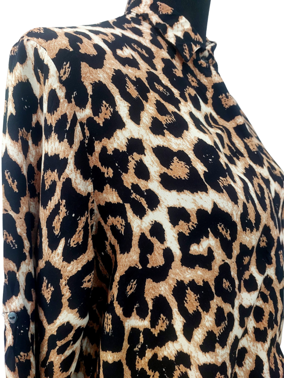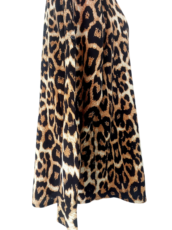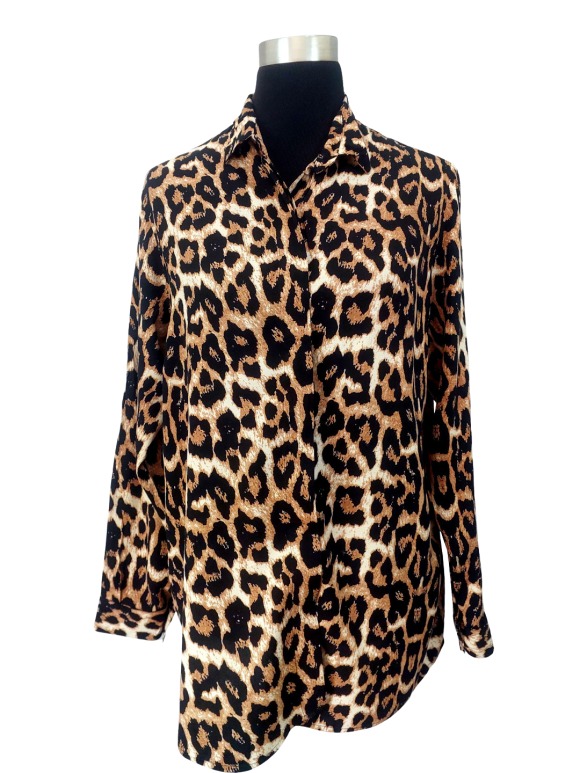Shirt - Classic Collar, V-Shape neckline, Regular shoulder, Plain Long sleeve - Brown, L