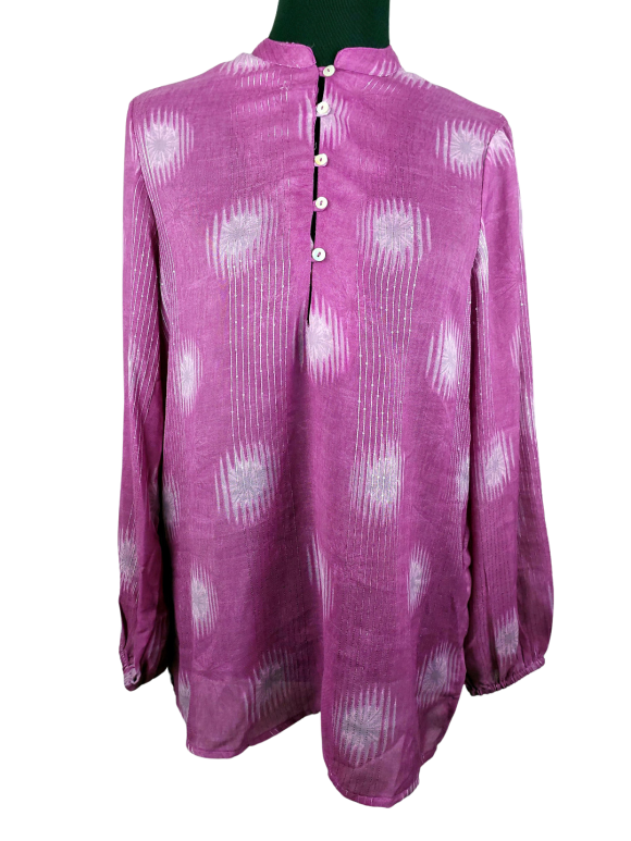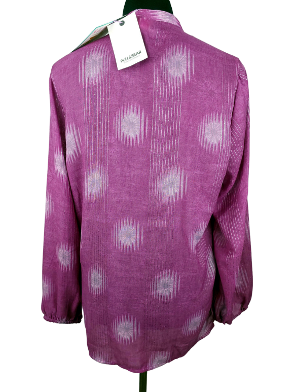 Blouse - No Collar, Henley neckline, Regular shoulder, Peasant Long sleeve - Pink, M