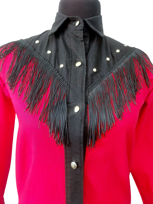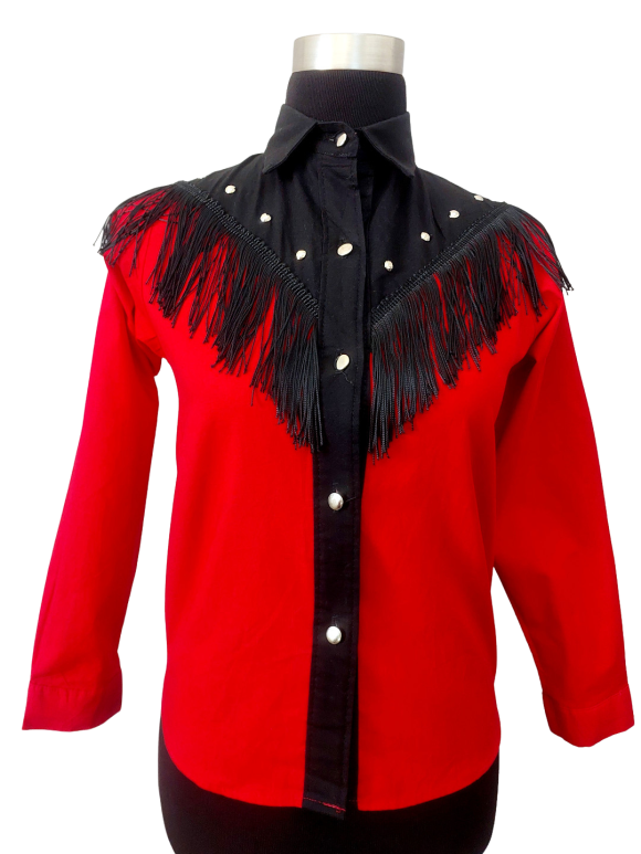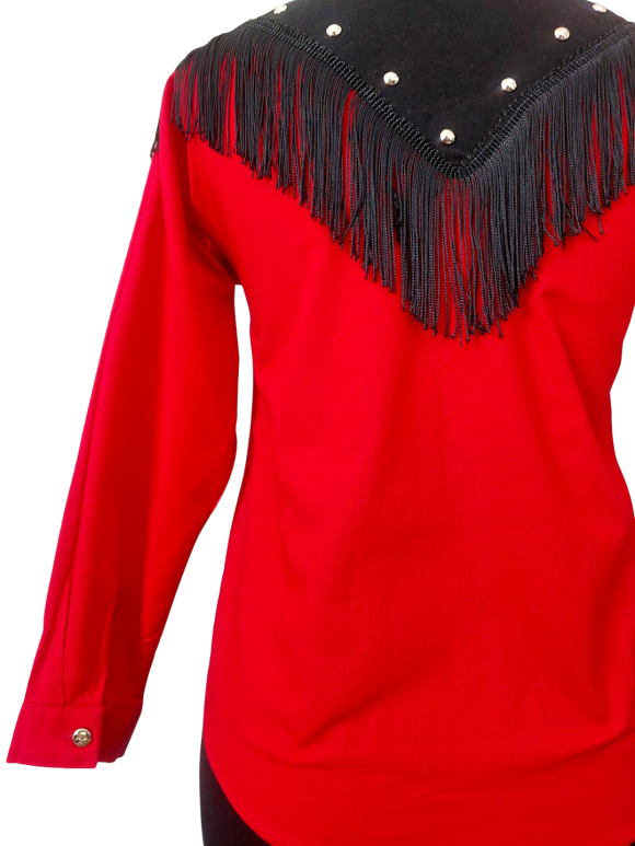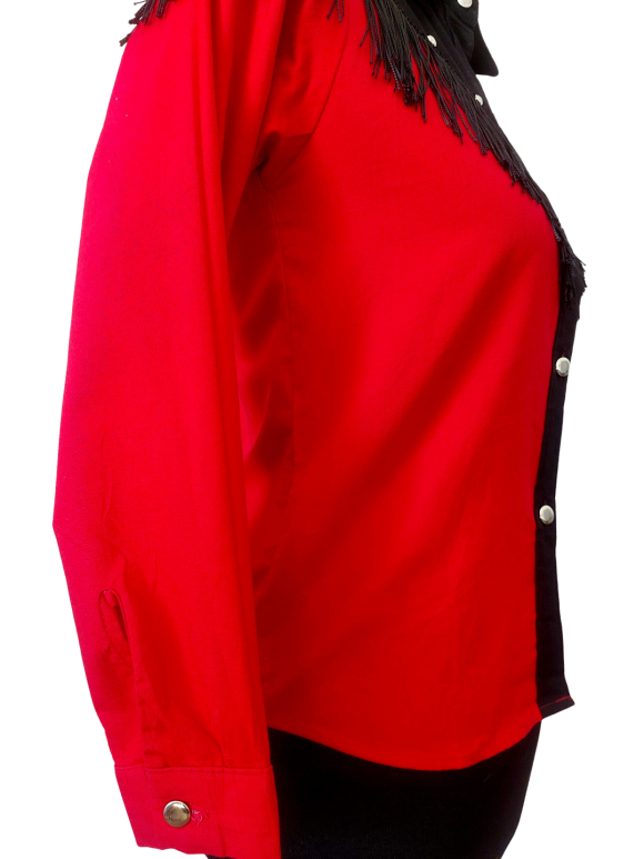 Shirt - Classic Collar, V-Shape neckline, Regular shoulder, Plain Long sleeve - Red, XS
