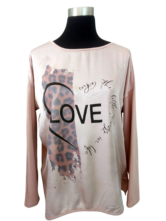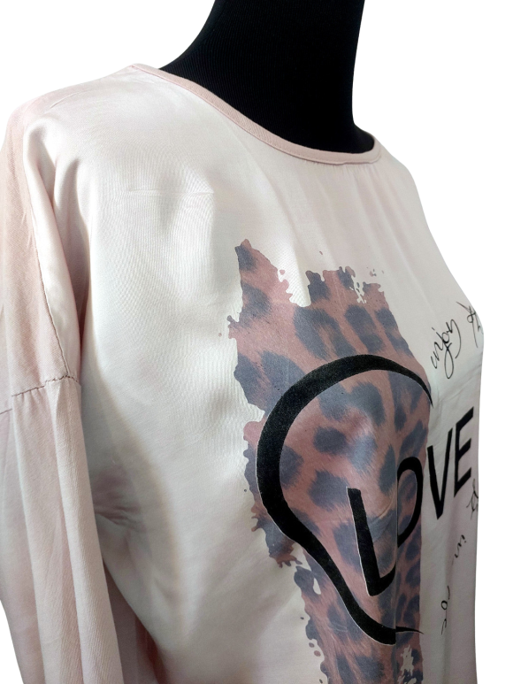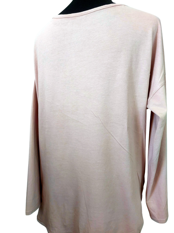 Relaxed T-Shirt - No Collar, Round neckline, Regular shoulder, Plain Long sleeve - Pink, XL/XXL