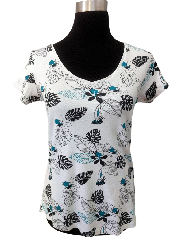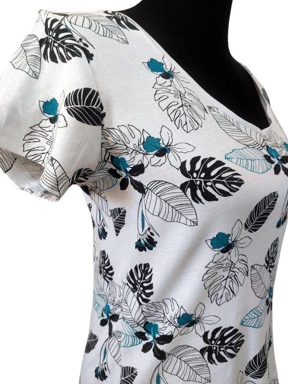 Fitted T-Shirt - No Collar, V-Shape neckline, Regular shoulder, Cap Short sleeve - White, M