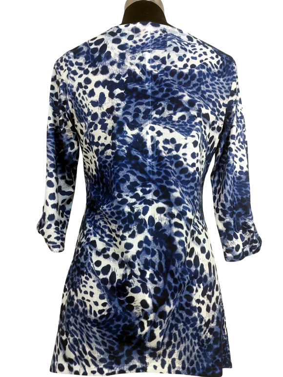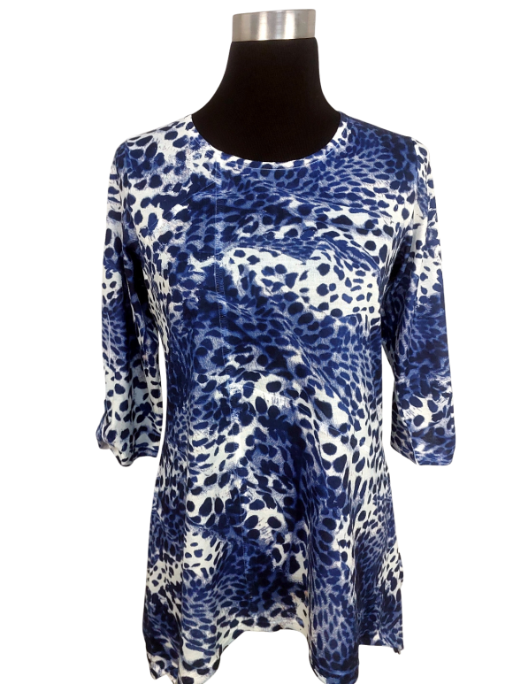 Relaxed T-Shirt - No Collar, Round neckline, Regular shoulder, Plain Long sleeve - Blue, S