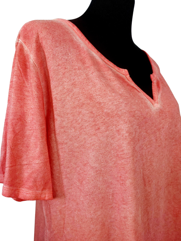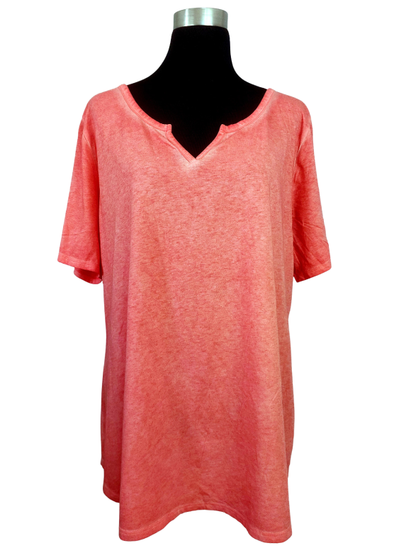 Relaxed T-Shirt - No Collar, V-Shape neckline, Regular shoulder, Plain Short sleeve - Orange, XXL