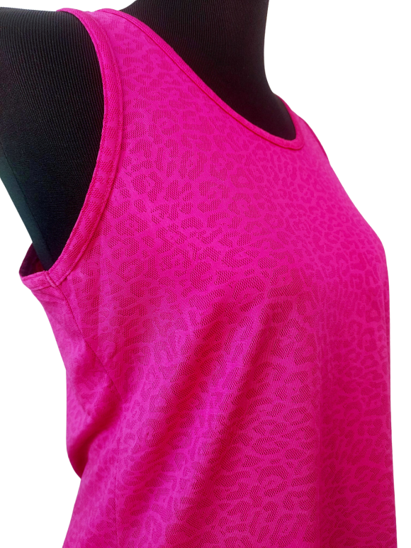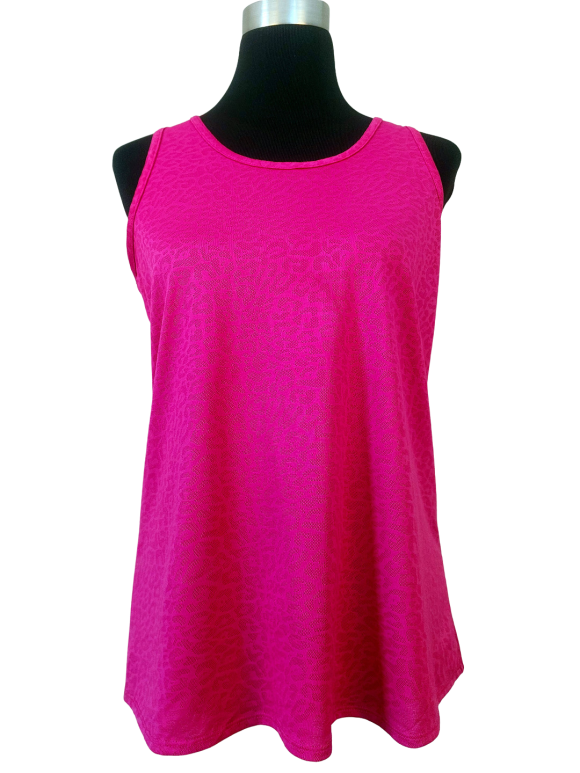 Relaxed T-Shirt - No Collar, Round neckline, Strap shoulder, Sleeveless - Fuchsia, S/M