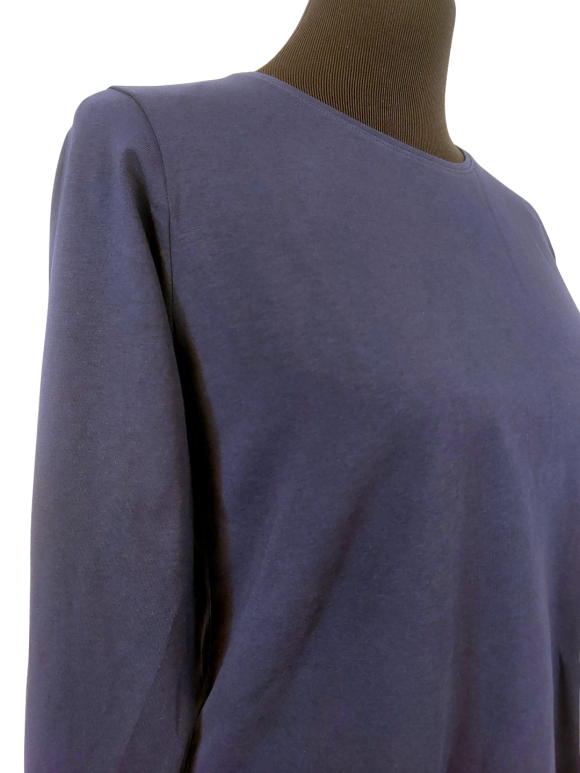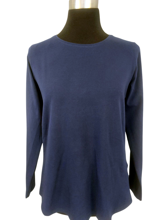Relaxed T-Shirt - No Collar, Round neckline, Regular shoulder, Plain Long sleeve - Navy Blue - S
