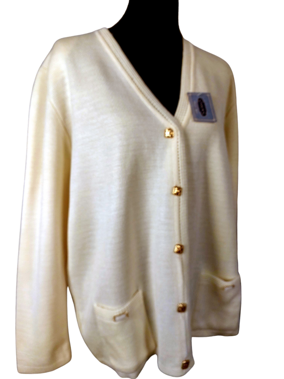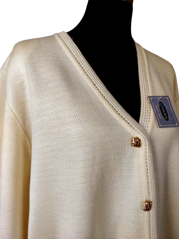 Cardigan - No Collar, V-Shape neckline, Regular shoulder, Plain Long sleeve - Ivory - XL/XXL