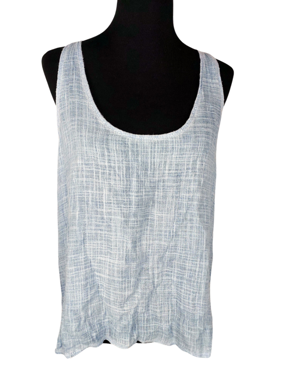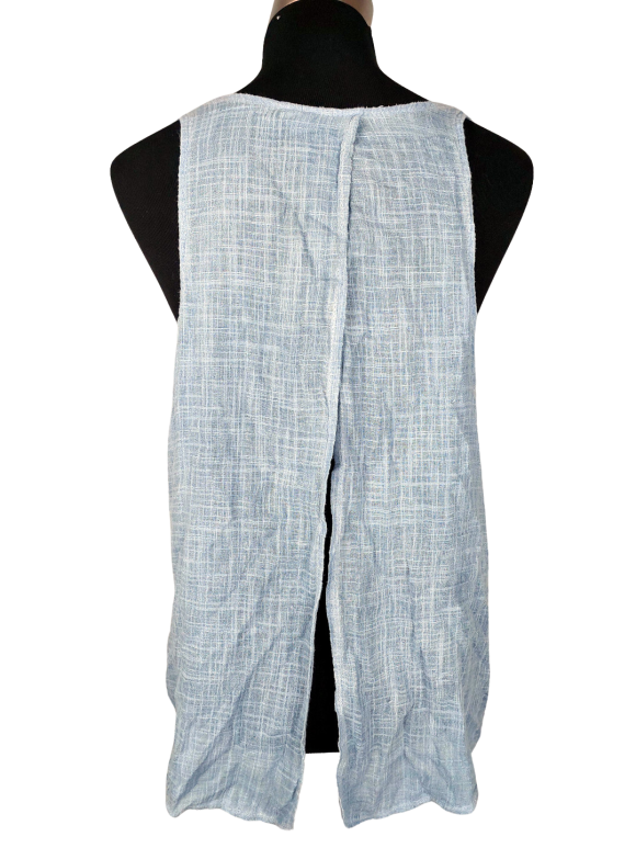 Blouse - No Collar, Henley neckline, Strap shoulder, Sleeveless - Blue, M