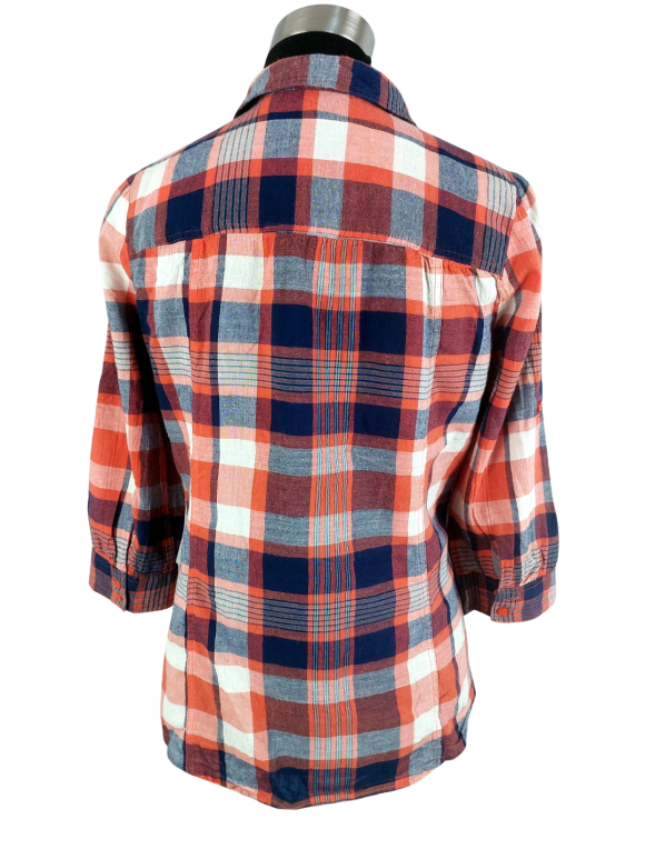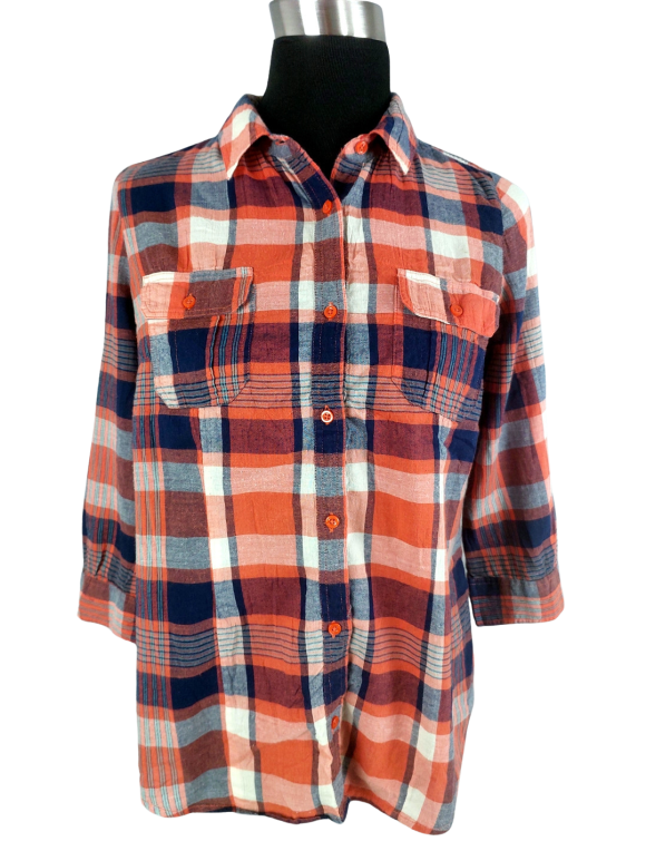 Shirt - Classic Collar, V-Shape neckline, Regular shoulder, Plain Long sleeve - Orange, M