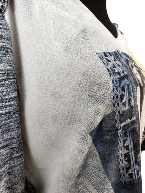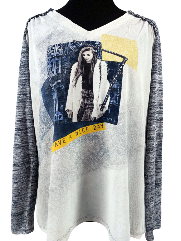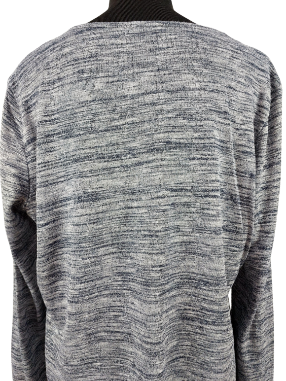 Relaxed T-Shirt - No Collar, V-Shape neckline, Regular shoulder, Plain Long sleeve - Gray, XL