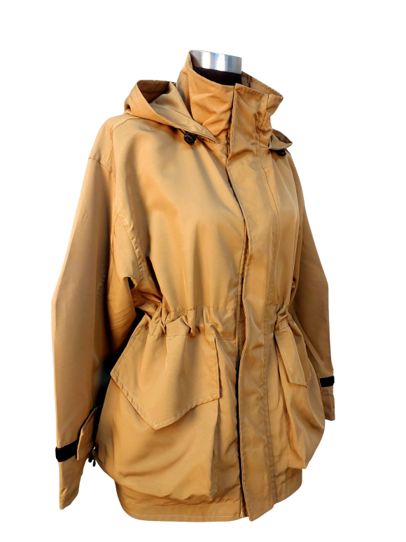 جاكيت أنوارك مطري (Anorak) - خط عنق مرتفع (Turtleneck)، بدون ياقة، كتف عادي، أكمام طويلة عادية (Plain) - بني - M