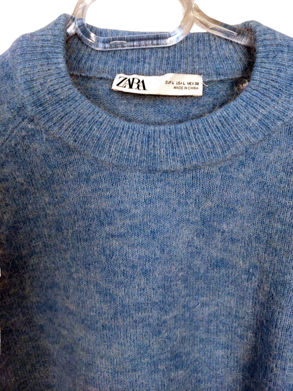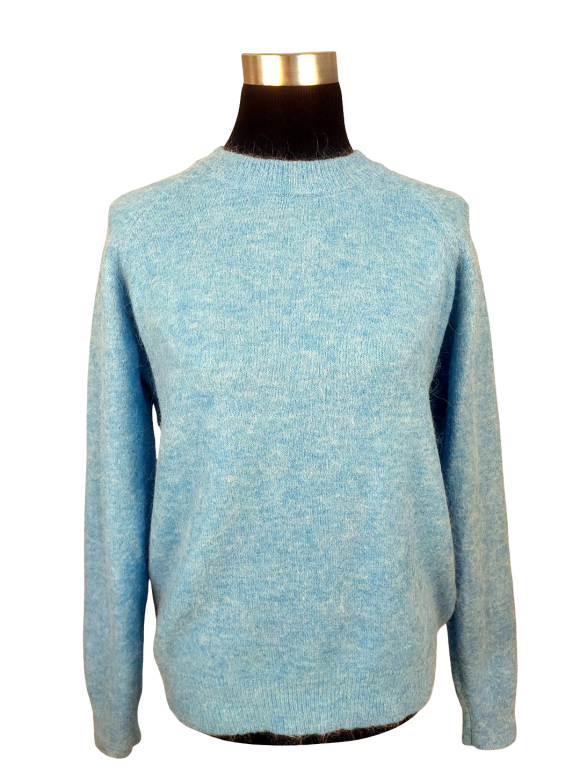 كنزة صوفية (Sweater) تلبس من فوق الرأس (Pullover) - خط عنق دائري، بدون ياقة، كتف عادي، أكمام طويلة عادية (Plain) - أزرق - L
