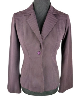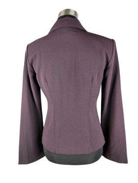 جاكيت بليزر - خط عنق شكل ـ V ـ، ياقة مكشكشة (Ruffle)، كتف عادي، أكمام طويلة عادية (Plain) - خمري, L