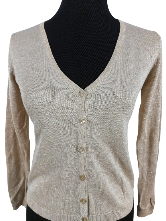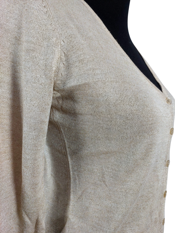 كارديجان - خط عنق شكل ـ V ـ، بدون ياقة، كتف عادي، أكمام طويلة عادية (Plain) - بني فاتح, M