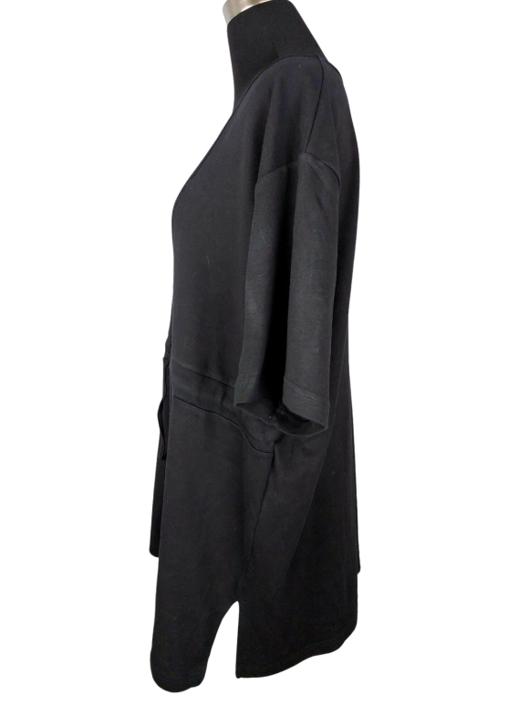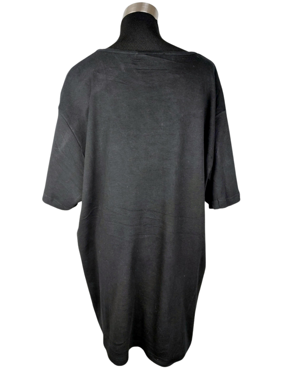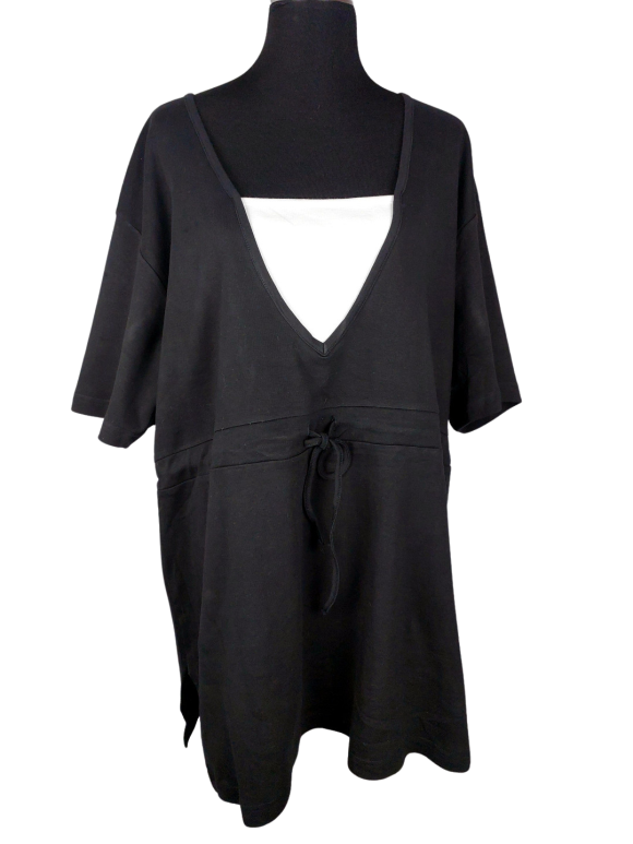 Blouson Dress - No Collar, V-Shape neckline, Regular shoulder, Plain Short sleeve - Black, 3XL