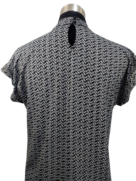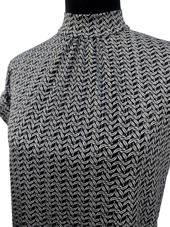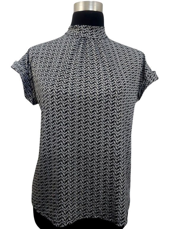 Blouse - No Collar, Turtleneck neckline, Regular shoulder, Batwing Short sleeve - Gray, S