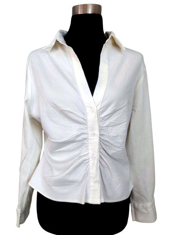 Shirt - Classic Collar, V-Shape neckline, Regular shoulder, Plain Long sleeve - White, L/XL