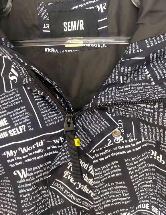 Anorak Jacket - No Collar, Turtleneck neckline, Regular shoulder, Plain Long sleeve - Navy Blue - XL