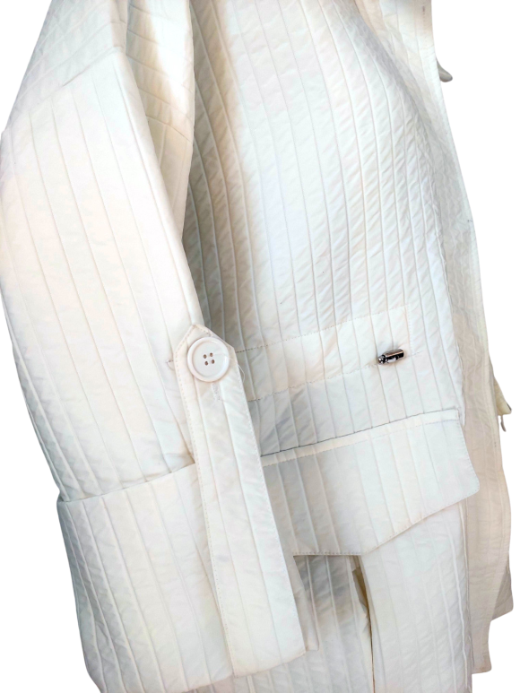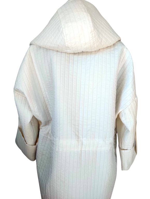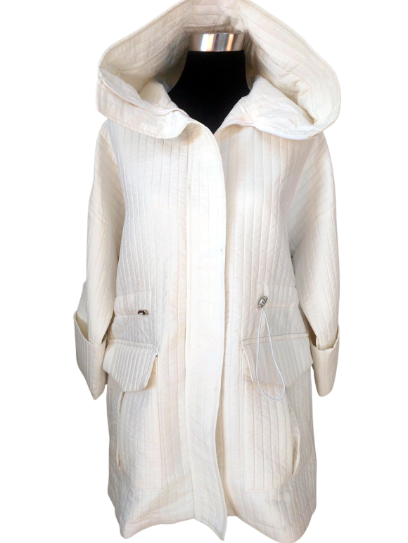 Anorak Jacket - No Collar, Round neckline, Regular shoulder, Plain Long sleeve - White - XL