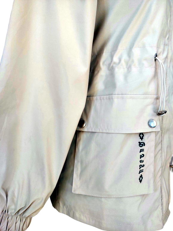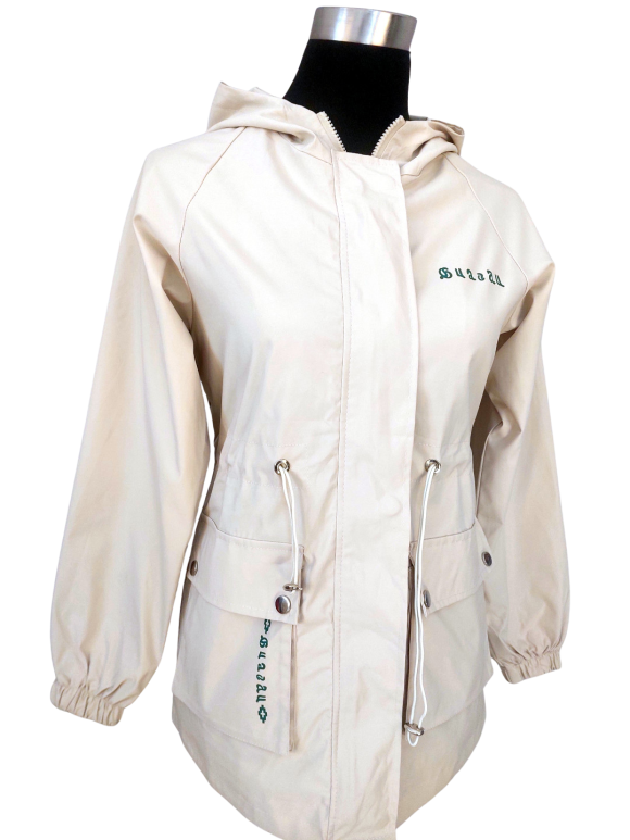 Anorak Jacket - No Collar, Round neckline, Regular shoulder, Plain Long sleeve - Ivory - S