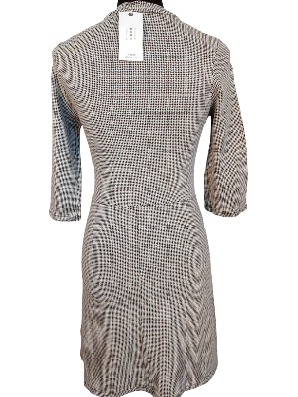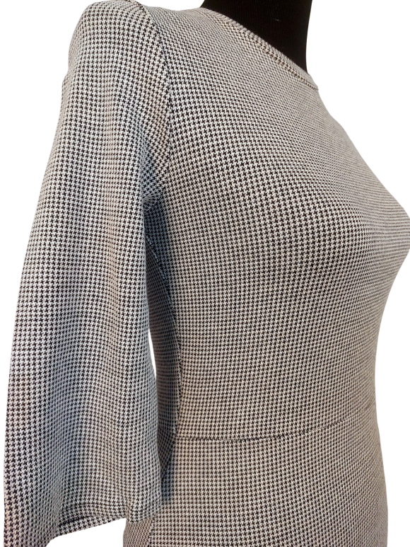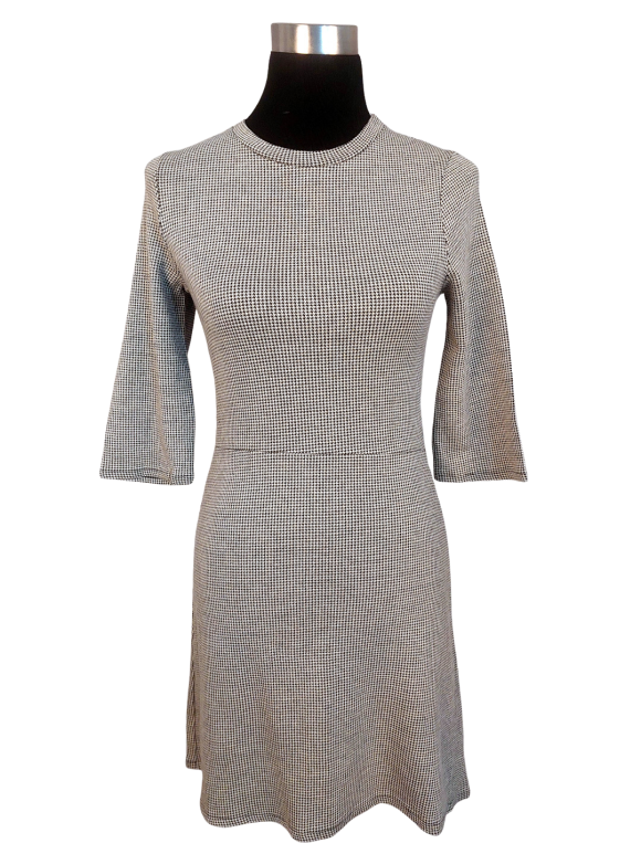 Blouson Dress - No Collar, Round neckline, Regular shoulder, Plain Long sleeve - Gray - XS